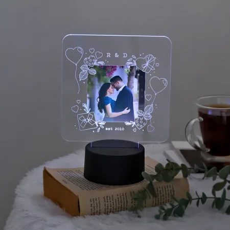 Illuminate your love story with this impressive colour-changing LED lamp. This two-in-one lamp features black base light with a personalization option, along with 7 RGB colours, a 5mm clear acrylic sheet on top, a battery slot base, and a USB power cable. Add your favourite photo, your and your spouse’s initials, and the year you married to make this lamp unique. Place this lamp on the side table for your next get-together and see how many compliments you receive. Please Note-The battery is not included in the package.